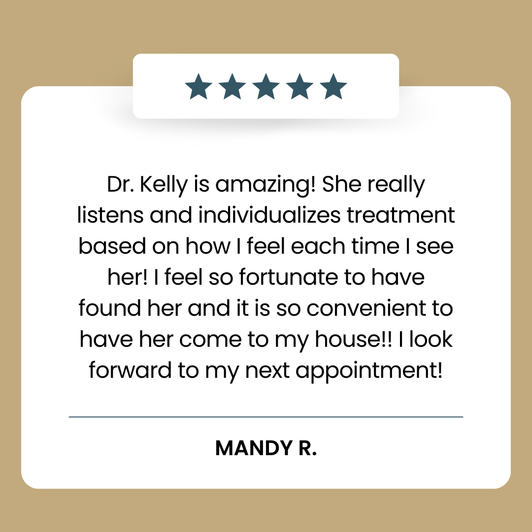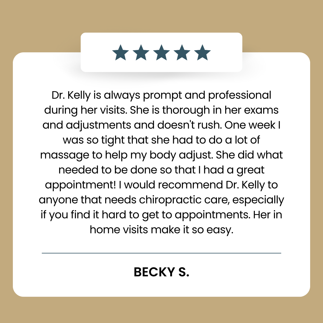 Our philosophy is centered on convenience, comfort, and quality. Appointments are longer than the average chiropractic visit, giving us the time to thoroughly assess and treat each patient. We work with busy professionals, families, and anyone who values the ease and effectiveness of care delivered directly to them. At Dr. Kelly’s House Calls, it’s not just about adjustments — it’s about helping you achieve a healthier lifestyle while respecting your schedule and space.